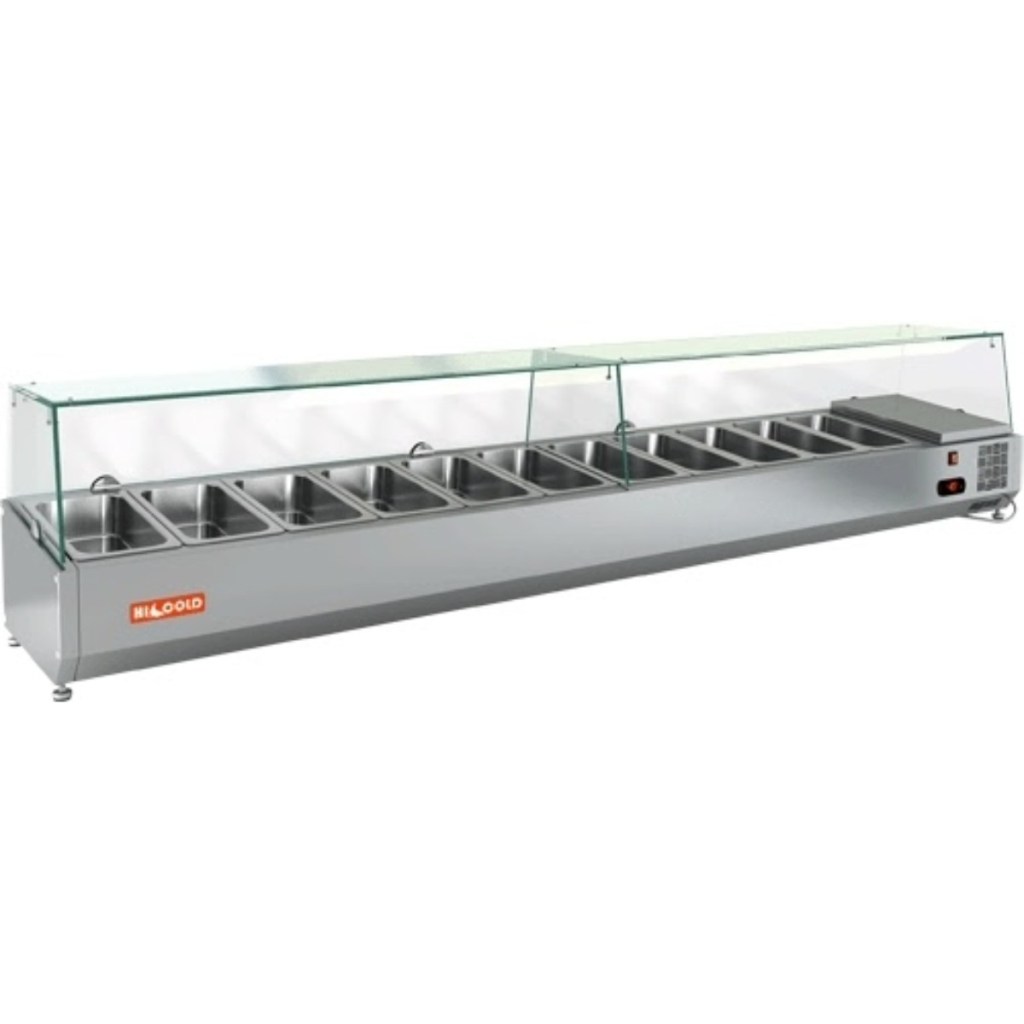 Каталог оборудования Холодильное оборудованиеВитрины для ингредиентовВитрина холодильная для ингредиентов HICOLD VRTG 2280 к PZ3 (1/3) Витрина холодильная для ингредиентов HICOLD VRTG 2280 к PZ3 (1/3) Код товара: 064-658 Поделиться: WhatsAppTelegram СравнитьДобавить в КПВ избранное 0 84 609 ₽ В корзину 0 шт Под заказСамовывоз сегодня бесплатно Взять в кредит Купить в лизинг Получить консультацию в WhatsApp Описание Характеристики Отзывы 0 Инструкции 3 Витрина холодильная для ингредиентов HICOLD VRTG 2280 к PZ3 (1/3) предназначена для охлаждения, кратковременного хранения и демонстрации ингредиентов, салатов и готовых блюд на предприятиях общественного питания и торговли. Устанавливается на холодильные столы для пиццы серии PZ3 благодаря встроенным креплениям в нижней части корпуса. На фото показана аналогичная модель с настольной установкой. Ключевые особенности: Корпус из нержавеющей стали — долговечность, простота ухода. Электронная панель управления — точная регулировка температуры. Исполнение G — стеклянная надстройка для удобного обзора продуктов. Высота витрины — 459 мм — компактное размещение на рабочей поверхности. Вместимость: 11xGN1/3 — рациональная организация хранения (гастроёмкости приобретаются отдельно). Совместимые модели столов: PZ3-1111/SN, PZ3-1111/GN HICOLD VRTG 2280 к PZ3 (1/3) — это профессиональная настольная витрина, которая сочетает компактные размеры, современное управление и высокое качество охлаждения. Отличный выбор для пиццерий, ресторанов и кафе, где важны удобство доступа, скорость работы и эффектная подача продуктов.Изображение товара, представленного на фото, может отличаться от его фактического вида. Показать все Габаритные размеры2280×385×459 ммДиапазон рабочей температурыот +2 до +7 °CДлина2280 ммГлубина385 ммВысота459 ммТип крышкиСтеклянная Гастроемкостей11 штТип гастроемкостейGN1/3 Мощность150 ВтРасход электроэнергии в сутки0,15 кВтНапряжение220 ВТип охлажденияСтатическое Материал изготовленияНержавеющая сталь ХладагентR134 Мощность0,15 кВтВес нетто65 кгВес брутто109 кгТип оттайкиРучная Габариты в упаковке2380×485×559 ммБрендHicold Оставить отзыв Еще никто не оставил отзыв на этот товар Инструкция на HICOLD VRTG 2280 к PZ3.pdfСхема установки на стол.jpgДекларация о соответствии.pdf Похожие товары Перейти в каталог Под заказ 51 939 ₽ Витрина холодильная для ингредиентов HICOLD VRTO 1835 1/4 Под заказ 59 932 ₽ Витрина холодильная для ингредиентов HICOLD VRTU 1915 1/3 В наличии 45 680 ₽ Витрина холодильная для ингредиентов Tatra TVR1200-5GN1/4 Под заказ 48 916 ₽ Витрина холодильная для ингредиентов HICOLD VRTO 1485 1/4 Под заказ 46 795 ₽ Витрина для ингредиентов Carboma A30 SM 1,2 (5 GN1/4) В наличии 38 993 ₽ Витрина холодильная для ингредиентов HURAKAN HKN-VRX1500/330 Под заказ 61 660 ₽ Витрина холодильная для ингредиентов HICOLD VRX 1400 1/4 Под заказ 39 582 ₽ Витрина холодильная для ингредиентов HURAKAN HKN-VRX1400/330 С этим товаром покупают Под заказ 108 891 ₽ Стол морозильный HiCold SN 1/BT Под заказ 51 621 ₽ Льдогенератор HURAKAN HKN-IMF20 (пальчики) В наличии 68 097 ₽ Шкаф холодильный Polair СМ 105-S Ранее просмотрено Под заказ 89 578 ₽ Витрина холодильная для ингредиентов HICOLD VRTG 2360 к PZ3 (1/3) В наличии 57 825 ₽ Витрина холодильная для ингредиентов HICOLD VRTU 1835 к PZ3 (1/3) Под заказ 72 729 ₽ Витрина холодильная для ингредиентов HICOLD VRTG 1970 к PZЕ3 (1/3) В наличии 62 800 ₽ Ларь морозильный с прямым стеклом Frostor F 700 C серый