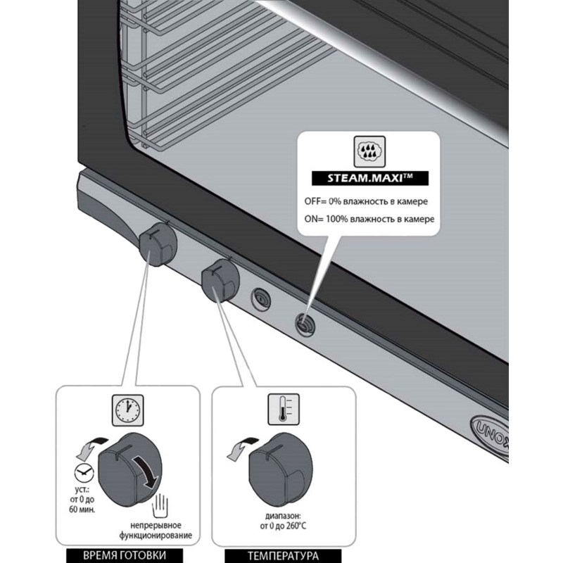 Каталог оборудования Тепловое оборудование для общепитаКонвекционные печиКонвекционная печь UNOX XFT 113 Конвекционная печь UNOX XFT 113 Код товара: 067-817 Поделиться: WhatsAppTelegram СравнитьВерсия для печатиВ избранное 0 72 186 ₽ В корзину 0 шт В наличииСамовывоз сегодня бесплатно Расчет стоимости доставкиОткудаМоскваСанкт-ПетербургАстраханьБарнаулБелгородБрянскВладивостокВолгоградВоронежЕкатеринбургИвановоИжевскИркутскКазаньКалининградКемеровоКировКраснодарКрасноярскКурскЛипецкМагнитогорскМахачкалаНабережные ЧелныНижний НовгородНижний ТагилНовокузнецкНовосибирскОмскОренбургПензаПермьПятигорскРостов-на-ДонуРязаньСамараСаратовСимферопольСтавропольТверьТольяттиТомскТулаТюменьУлан-УдэУльяновскУфаХабаровскЧебоксарыЧелябинскЯрославльКудаМоскваСанкт-ПетербургАстраханьБарнаулБелгородБрянскВладивостокВолгоградВоронежЕкатеринбургИвановоИжевскИркутскКазаньКалининградКемеровоКировКраснодарКрасноярскКурскЛипецкМагнитогорскМахачкалаНабережные ЧелныНижний НовгородНижний ТагилНовокузнецкНовосибирскОмскОренбургПензаПермьПятигорскРостов-на-ДонуРязаньСамараСаратовСимферопольСтавропольТверьТольяттиТомскТулаТюменьУлан-УдэУльяновскУфаХабаровскЧебоксарыЧелябинскЯрославльРассчитатьРасчет стоимости доставки указан приблизительный, более точный расчет Вам может осуществить сотрудник транспортной компании. Получить консультацию в Max Получить консультацию в Max Описание Характеристики Отзывы 0 Конвекционная печь UNOX XFT 113 предназначена для выпечки хлебобулочных и кондитерских изделий из любого вида теста. Модель также успешно используется для жарки, запекания различных блюд, быстрого разогрева замороженных продуктов, полуфабрикатов и изделий в вакуумной упаковке. Благодаря инновационным технологиям, создающим идеальный микроклимат внутри рабочей камеры, тесто приобретает правильную внутреннюю структуру, равномерно пропекается и покрывается румяной хрустящей корочкой. Рекомендуется для кафе, пекарен, кондитерских и заведений быстрого питания. Для достижения наилучших результатов выпечки рекомендуется использовать совместно с расстоечным шкафом UNOX XLT 133. В комплект поставки входит набор из 3 противней TG 305 (размером 460×330 мм). Противни изготовлены из алюминия. Режимы работы: Конвекция: +30...+260 °C Пароконвекция: +90...+260 °C Предварительный нагрев: до +260 °C Ключевые особенности: Механическая панель управления с ручным регулированием времени приготовления, температуры и степени пароувлажнения — простота и надёжность, не требующие сложного обучения персонала. Отображение оставшегося времени приготовления. Режим «INF» — непрерывная работа оборудования без ограничения времени. AIR.Plus — оптимальное распределение воздуха внутри рабочей камеры. Один вентилятор обеспечивает равномерную циркуляцию горячего воздуха. DRY.Plus — быстрое удаление избыточной влажности из рабочей камеры для формирования хрустящей корочки и придания румяного цвета готовым изделиям. STEAM.Plus — обеспечение идеального уровня влажности в рабочей камере. Принудительный ручной ввод пара позволяет точно дозировать увлажнение в процессе выпечки. Protek.SAFE — надёжная теплоизоляция обеспечивает максимальную эффективность оборудования. Охлаждение внешних поверхностей и стекла дверцы гарантирует безопасную и комфортную работу оп