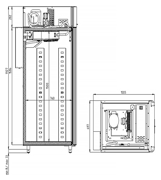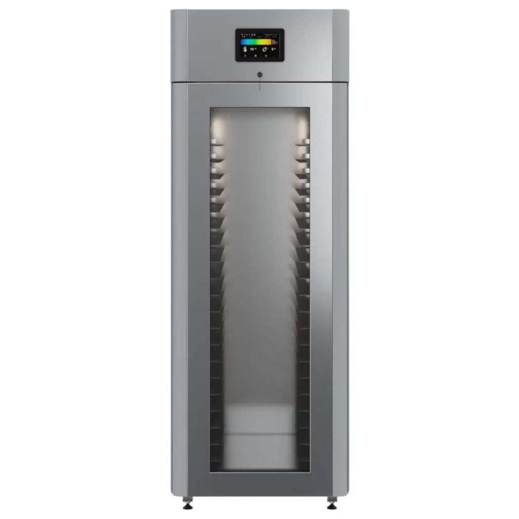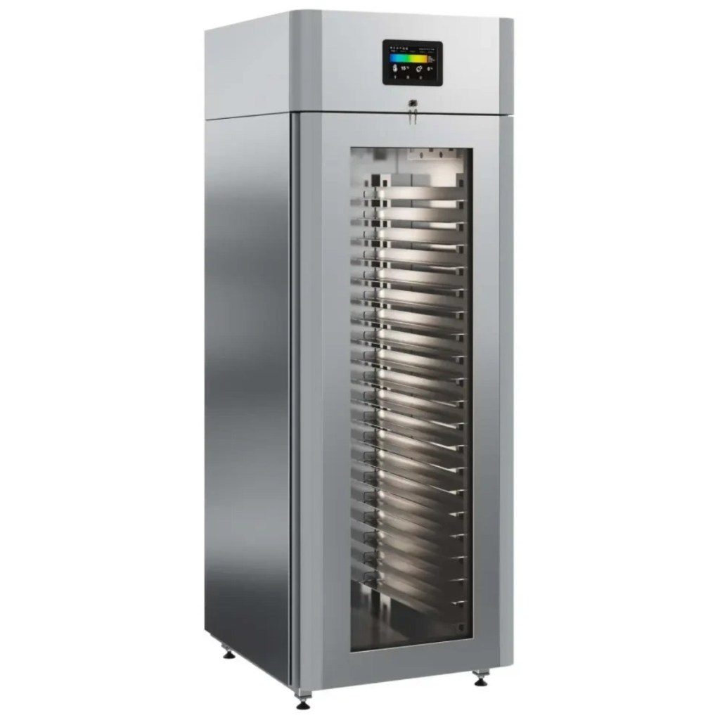 Каталог оборудования Холодильное оборудованиеШкафы холодильныеСпециализированные холодильные шкафыШкаф холодильный для хлебопекарных производств Polair CS107-Bakery Br со стеклом (Тип 1) Шкаф холодильный для хлебопекарных производств Polair CS107-Bakery Br со стеклом (Тип 1) Код товара: 062-622 Поделиться: WhatsAppTelegram СравнитьДобавить в КПВ избранное 0 414 545 ₽ В корзину 0 шт Под заказСамовывоз сегодня бесплатно Взять в кредит Купить в лизинг Получить консультацию в WhatsApp Описание Характеристики Отзывы 0 Инструкции 5 Шкаф холодильный для хлебопекарных производств Polair CS107-Bakery Br со стеклом (Тип 1) предназначен для создания оптимальных условий хранения и расстойки заготовок из теста на предприятиях общественного питания и торговли. Цельнозаливной корпус выполнен из нержавеющей стали, дверь — стеклопакет. Оборудование стабильно работает при температуре окружающей среды до +40 °C. В комплект входят 20 пар направляющих размером 400×600 мм. Особенности: Широкий функционал: охлаждение, замедление ферментации, хранение, регенерация, брожение и расстойка Динамическое охлаждение с мягким обдувом без заветривания и автоматическая оттайка с системой испарения конденсата Панель управления с 5" дисплеем: контроль температуры, влажности (регулируется от 60 до 95 %), скорости вентилятора и времени, а также возможность создания и сохранения программ Встроенный ультразвуковой увлажнитель (необходима система водоочистки и канализация) Эргономичная конструкция: верхнее расположение агрегата, распашная дверь со стеклопакетом, механизм самозакрывания, педаль для открытия, съёмные направляющие и легко заменяемый уплотнитель с магнитной вставкой Дополнительная защита: пластиковый бордюр по периметру камеры для предотвращения повреждений от тележек Простота ухода: штампованное углубление в дне корпуса для сбора загрязнений Экологичный хладагент R290 и энергоэффективность: потребляемая мощность — 0,55 кВт (охлаждение), 0,9 кВт (нагрев) Толщина стенки корпуса — 43 мм Polair CS107-Bakery Br со стеклом (Тип 1) — надёжный и многофункциональный шкаф, который обеспечивает полное управление процессами брожения и расстойки теста. Современная система охлаждения и увлажнения, продуманная конструкция и удобное управление делают его оптимальным решением для пекарен и кондитерских, стремящихся к стабильному качеству и высокой производительности.Изображение товара, представленного на фото, может отличаться от его фактического вида. Показать все Габаритные размеры697×1005×1960 ммДиапазон рабочей температурыот -10 до +40 °CДлина697 ммШирина1005 ммВысота1960 ммОбъём700 лКол-во дверей1 Тип двериСтеклянная Уровень влажностиот 60 до 95 %Направляющие под EN 40*6020 Расстояние между направляющими60 ммХолодильный агрегатВстроенный Тип оттайкиАвтоматическая Тип охлажденияДинамический ПодсветкаЕсть ХладагентR290 Вес нетто180 кгБрендPolairВсе специализированные холодильные шкафы Из нержавейки Оставить отзыв Еще никто не оставил отзыв на этот товар Схема POLAIR CS107 Bakery Br.jpgИнструкция на POLAIR CS107 Bakery Br.pdfБрошюра на хлебопекарное оборудование POLAIR.pdfДекларация о соответствии.pdfСертификат соответствия.pdf Похожие товары Перейти в каталог Под заказ 385 050 ₽ Шкаф холодильный для вызревания салями Polair CS107 Salami со стеклом Под заказ 399 500 ₽ Шкаф холодильный для вызревания мяса Polair CS107 Meat со стеклом (Тип 1) В наличии 186 231 ₽ Шкаф холодильный HUR