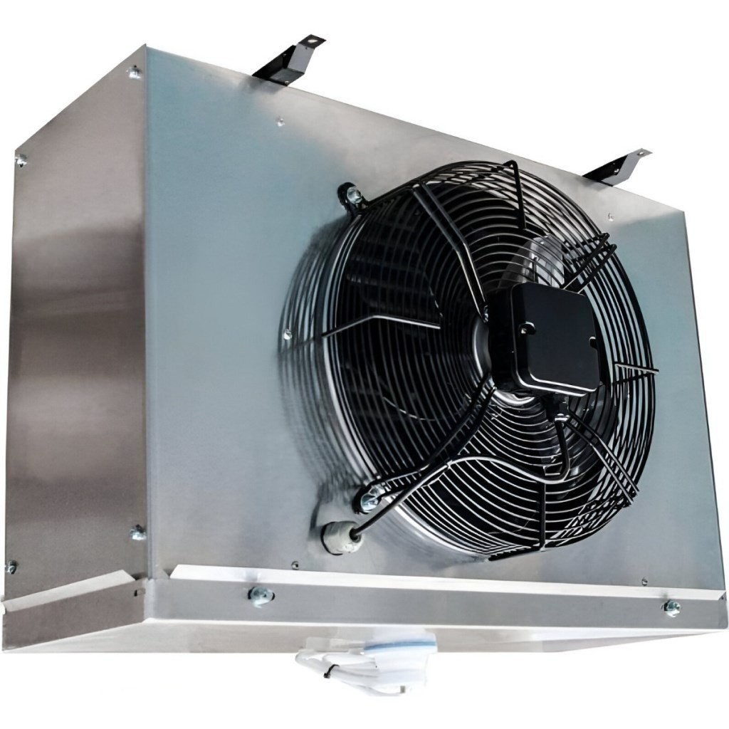 Мощный воздухоохладитель: с одним вентилятором диаметром 350 миллиметров шагом ребер 5,5 мм и дальностью воздушной струи до 10 метров.