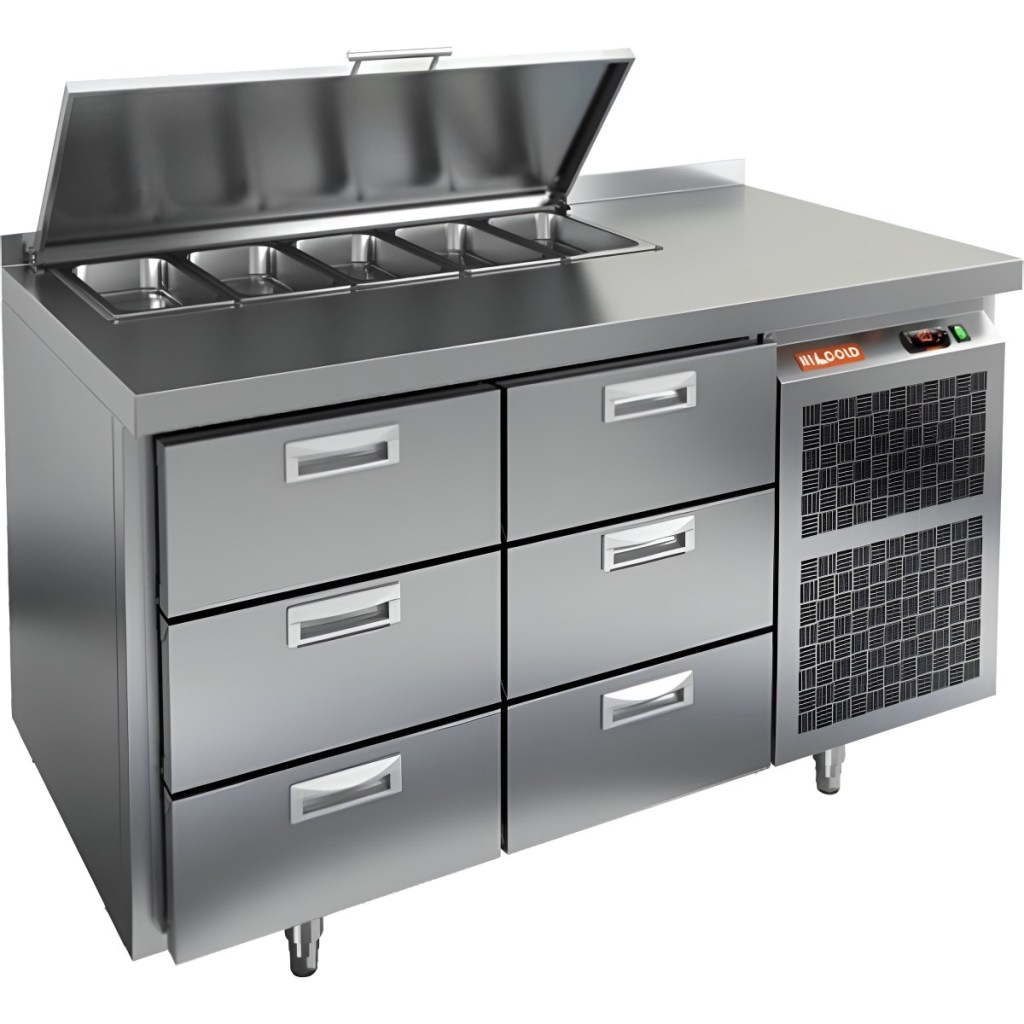 HiCold SL1-33GN (1/3) с крышкой — надежный салатный стол для удобной организации рабочего места и сохранения свежести продуктов на профессиональной кухне.