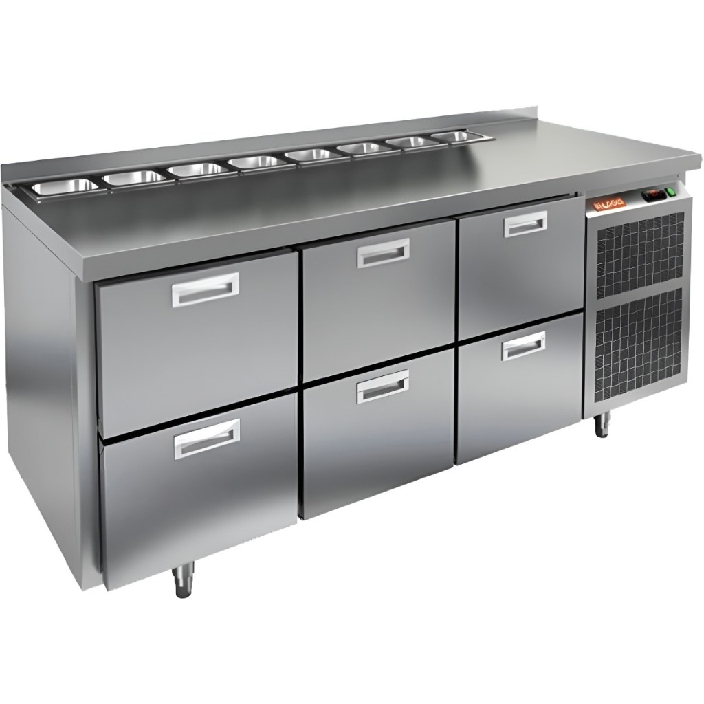 Каталог оборудования Холодильное оборудованиеСтолы охлаждаемыеСтолы холодильные для салатовСтол холодильный для салатов HiCold SL2-222GN (1/6) без крышки Стол холодильный для салатов HiCold SL2-222GN (1/6) без крышки Код товара: 064-817 Поделиться: WhatsAppTelegram СравнитьДобавить в КПВ избранное 0 255 861 ₽ В корзину 0 шт Под заказСамовывоз сегодня бесплатно Взять в кредит Купить в лизинг Получить консультацию в WhatsApp Описание Характеристики Отзывы 0 Инструкции 1 Стол холодильный для салатов HiCold SL2-222GN (1/6) без крышки предназначен для использования на предприятиях общественного питания и торговли. Он подходит для хранения, обработки и кратковременного охлаждения ингредиентов, применяемых при приготовлении пиццы, салатов, закусок и других блюд. Модель совмещает охлаждаемый объем и рабочую поверхность, что значительно повышает удобство и скорость работы персонала. Корпус и столешница выполнены из прочной и гигиеничной нержавеющей стали, устойчивой к влаге, загрязнениям и механическим повреждениям. Особенности модели: Электронная панель управления — точная настройка температуры. Салат-бар на 8 гастроемкостей — быстрый доступ к ингредиентам. 6 внутренних ящиков — удобное размещение и легкая замена продуктов. Автоматические доводчики дверей — комфортная эксплуатация. Съёмные магнитные уплотнители — герметичность и стабильная температура. Открытая агрегатная часть — лёгкое обслуживание. Регулируемые ножки — установка на любой поверхности. Глубина гастроемкостей до 150 мм, столешница и теплоизоляция — 50 мм. Высота борта — 50 мм — защита рабочей поверхности. HiCold SL2-222GN (1/6) без крышки — универсальное и функциональное решение для профессиональной кухни, позволяющее оптимизировать рабочие процессы и повысить производительность за счет удобного хранения и быстрого доступа к ингредиентам.Изображение товара, представленного на фото, может отличаться от его фактического вида. Показать все Габаритные размеры1835×700×850 ммДиапазон рабочей температурыот +2 до +10 °CРасположение агрегатаБоковое Материал столешницыНержавеющая Тип столаС ящиками Объём505 лТип гастроемкостейGN 1/6 Количество ящиков6 штНапряжение220 ВМощность0,5 кВтТип охлажденияДинамическое Тип оттайкиАвтоматическая СтолешницаС бортом Габариты в упаковке2000×850×1000 ммВес нетто130 кгВес брутто180 кгБрендHicold Оставить отзыв Еще никто не оставил отзыв на этот товар Декларация о соответствии.pdf Ранее просмотрено Под заказ 127 431 ₽ Стол холодильный для салатов HiCold SLE2-11GN (1/6) З с крышкой В наличии 120 862 ₽ Стол холодильный для салатов HiCold SLE1-11GN (1/3) О без крышки