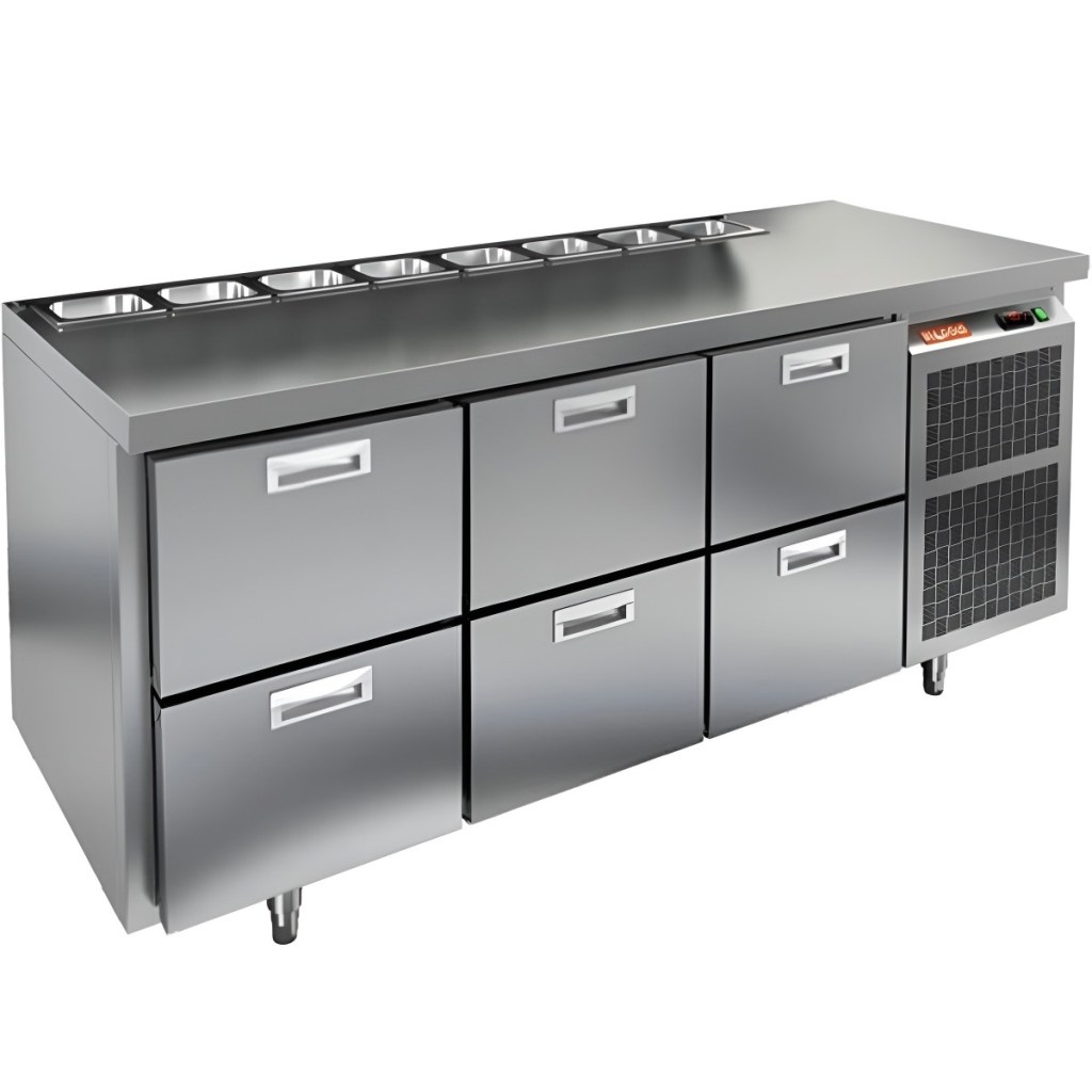 Каталог оборудования Холодильное оборудованиеСтолы охлаждаемыеСтолы холодильные для салатовСтол холодильный для салатов HiCold SL2-222GN (1/6) О без крышки Стол холодильный для салатов HiCold SL2-222GN (1/6) О без крышки Код товара: 064-818 Поделиться: WhatsAppTelegram СравнитьДобавить в КПВ избранное 0 255 861 ₽ В корзину 0 шт Под заказСамовывоз сегодня бесплатно Взять в кредит Купить в лизинг Получить консультацию в Max Описание Характеристики Отзывы 0 Инструкции 1 Стол холодильный для салатов HiCold SL2-222GN (1/6) О без крышки предназначен для использования на предприятиях общественного питания и торговли. Он подходит для хранения, обработки и кратковременного охлаждения ингредиентов, применяемых при приготовлении пиццы, салатов, закусок и других блюд. Модель совмещает охлаждаемый объем и рабочую поверхность, что значительно повышает удобство и скорость работы персонала. Корпус и столешница выполнены из прочной и гигиеничной нержавеющей стали, устойчивой к влаге, загрязнениям и механическим повреждениям. Особенности модели: Электронная панель управления — точная настройка температуры. Салат-бар на 8 гастроемкостей — быстрый доступ к ингредиентам. 6 внутренних ящиков — удобное размещение и легкая замена продуктов. Автоматические доводчики дверей — комфортная эксплуатация. Съёмные магнитные уплотнители — герметичность и стабильная температура. Открытая агрегатная часть — лёгкое обслуживание. Регулируемые ножки — установка на любой поверхности. Глубина гастроемкостей до 150 мм, столешница и теплоизоляция — 50 мм. HiCold SL2-222GN (1/6) О без крышки — универсальное и функциональное решение для профессиональной кухни, позволяющее оптимизировать рабочие процессы и повысить производительность за счет удобного хранения и быстрого доступа к ингредиентам.Изображение товара, представленного на фото, может отличаться от его фактического вида. Показать все Габаритные размеры1835×700×850 ммДиапазон рабочей температурыот +2 до +10 °CРасположение агрегатаБоковое Материал столешницыНержавеющая Тип столаС ящиками Объём505 лТип гастроемкостейGN 1/6 Количество ящиков6 штНапряжение220 ВМощность0,5 кВтТип охлажденияДинамическое Тип оттайкиАвтоматическая СтолешницаБез борта Габариты в упаковке2000×850×1000 ммВес нетто130 кгВес брутто180 кгБрендHicold Оставить отзыв Еще никто не оставил отзыв на этот товар Декларация о соответствии.pdf Ранее просмотрено Под заказ 222 022 ₽ Стол холодильный для салатов HiCold SLE3-1111GN полипропилен, без крышки Под заказ 41 995 ₽ Дверь холодильная распашная одностворчатая СТ-РДО-800*2200/80 Под заказ 45 097 ₽ Дверь холодильная распашная одностворчатая СТ-РДО-1000*2200/80 Под заказ 49 843 ₽ Дверь холодильная распашная одностворчатая СТ-РДО-1200*2200/80 Под заказ 47 472 ₽ Дверь холодильная распашная одностворчатая СТ-РДО-1100*2200/80 Под заказ 43 547 ₽ Дверь холодильная распашная одностворчатая СТ-РДО-900*2200/80 Под заказ 56 186 ₽ Дверь холодильная распашная одностворчатая НТ-РДО-900*2200/80