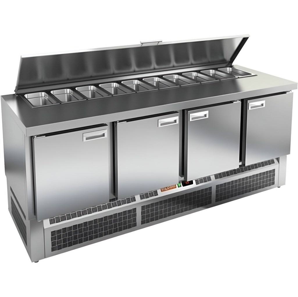Каталог оборудования Холодильное оборудованиеСтолы охлаждаемыеСтолы холодильные для салатовСтол холодильный для салатов HiCold SLE2-1111GN (1/6) О с крышкой Стол холодильный для салатов HiCold SLE2-1111GN (1/6) О с крышкой Код товара: 064-860 Поделиться: WhatsAppTelegram СравнитьДобавить в КПВ избранное 0 171 802 ₽ В корзину 0 шт Под заказСамовывоз сегодня бесплатно Взять в кредит Купить в лизинг Получить консультацию в WhatsApp Описание Характеристики Отзывы 0 Инструкции 2 Стол холодильный для салатов HiCold SLE2-1111GN (1/6) О с крышкой — это профессиональный салатный стол, предназначенный для использования в кафе, ресторанах, пиццериях и других предприятиях общественного питания. Он совмещает в себе просторную рабочую поверхность и охлаждаемый объем, обеспечивая удобство и эффективность при приготовлении различных блюд — от салатов до пиццы. Благодаря корпусу и столешнице из нержавеющей стали, оборудование устойчиво к коррозии, легко очищается и соответствует санитарным требованиям. Металлическая крышка защищает продукты от загрязнений и сохраняет их свежесть. Ключевые особенности: Электронная панель управления — обеспечивает точное регулирование температуры и удобство в эксплуатации. 4 вместительные полки формата GN 1/1 — позволяют организовать хранение большого объема продуктов и ингредиентов. Салат-бар вмещает до 11 гастроемкостей — оптимален для широкого ассортимента заготовок. Автоматические доводчики дверей с фиксацией — повышают удобство использования, особенно при загрузке и выгрузке продуктов. Магнитные уплотнители — легко заменяются и обеспечивают плотное прилегание, предотвращая утечку холода. Открытая агрегатная часть — облегчает техническое обслуживание. Регулируемые ножки — позволяют установить стол на любой поверхности, компенсируя неровности пола. Максимальная глубина гастроемкостей — 100 мм — подходит для хранения различных типов продуктов. Столешница толщиной 50 мм без борта — полноценная рабочая зона. Теплоизоляция толщиной 50 мм — сохраняет стабильный температурный режим и снижает энергозатраты. HiCold SLE2-1111GN (1/6) О с крышкой — это функциональный и вместительный салатный стол, который идеально подходит для профессиональных кухонь с интенсивной загрузкой. Он сочетает в себе надежность, удобство и продуманную конструкцию для максимальной производительности на рабочем месте.Изображение товара, представленного на фото, может отличаться от его фактического вида. Показать все Габаритные размеры1970×700×850 ммДиапазон рабочей температурыот +2 до +10 °CРасположение агрегатаНижнее Материал столешницыНержавеющая Тип столаС дверьми Тип двериГлухая Объём505 лКоличество дверей4 штТип гастроемкостейGN 1/6 Размер полки530х325 ммНапряжение220 ВМощность0,46 кВтТип охлажденияДинамическое Тип оттайкиАвтоматическая СтолешницаБез борта Габариты в упаковке2200×850×1080 ммВес нетто135 кгВес брутто159 кгБрендHicold Оставить отзыв Еще никто не оставил отзыв на этот товар Паспорт на HICOLD SLE2-1111GN (1/6) О.pdfДекларация о соответствии.pdf Ранее просмотрено Под заказ 212 481 ₽ Стол холодильный для салатов HiCold SL2-113SN (1/6) с крышкой Под заказ 213 382 ₽ Стол холодильный для салатов HiCold SL2-113GN (1/6) с крышкой В наличии Цена по запросу Стол холодильный для салатов HiCold SLE1-1111SN (1/3) без крышки Под заказ 176 082 ₽ Стол холодильный среднетемпературный Abat СХС-60-02 без борта (дверь-стекло, дверь-стекло, двер