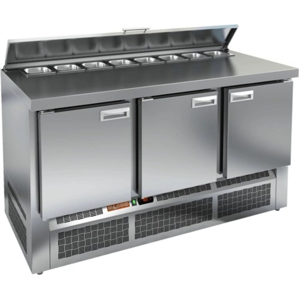 Каталог оборудования Холодильное оборудованиеСтолы охлаждаемыеСтолы холодильные для салатовСтол холодильный для салатов HiCold SLE2-111SN (1/6) О с крышкой Стол холодильный для салатов HiCold SLE2-111SN (1/6) О с крышкой Код товара: 064-872 Поделиться: WhatsAppTelegram СравнитьДобавить в КПВ избранное 0 146 782 ₽ В корзину 0 шт Под заказСамовывоз сегодня бесплатно Взять в кредит Купить в лизинг Получить консультацию в WhatsApp Описание Характеристики Отзывы 0 Инструкции 2 Стол холодильный для салатов HiCold SLE2-111SN (1/6) О с крышкой предназначен для предприятий общественного питания и торговли. Он используется для хранения, охлаждения и обработки ингредиентов, применяемых при приготовлении салатов, пиццы, закусок и других блюд. Модель объединяет удобную рабочую поверхность и охлаждаемый отсек, позволяя повару иметь все необходимое под рукой. Конструкция выполнена из прочной нержавеющей стали, устойчивой к коррозии и легкой в уходе. Металлическая крышка защищает продукты от загрязнений и сохраняет их свежесть. Особенности модели: Электронная панель управления — точная настройка температуры и контроль за режимами работы. 3 вместительные внутренние полки — рациональное распределение хранения. Салат-бар вмещает 8 гастроемкостей — оптимальная организация ингредиентов. Автоматические доводчики дверей с фиксацией в открытом положении — удобно при загрузке и выгрузке продуктов. Магнитные уплотнители — легко заменяются, обеспечивая герметичность. Открытая агрегатная часть — упрощает техническое обслуживание. Регулируемые по высоте ножки — позволяют установить оборудование на любой поверхности. Глубина гастроемкостей — до 100 мм. Толщина столешницы и теплоизоляции — по 50 мм, что способствует сохранению холода и прочности конструкции. HiCold SLE2-111SN (1/6) О с крышкой — это функциональный и надёжный салатный стол, сочетающий в себе удобство работы и эффективное охлаждение. Отличное решение для кухни с интенсивной нагрузкой. Изображение товара, представленного на фото, может отличаться от его фактического вида. Показать все Габаритные размеры1485×600×850 ммДиапазон рабочей температурыот +2 до +10 °CРасположение агрегатаНижнее Материал столешницыНержавеющая Тип столаС дверьми Тип двериГлухая Объём320 лКоличество дверей3 штТип гастроемкостейGN 1/6 Размер полки430×325 ммНапряжение220 ВМощность0,22 кВтТип охлажденияДинамическое Тип оттайкиАвтоматическая СтолешницаБез борта Габариты в упаковке1700×750×1080 ммВес нетто88 кгВес брутто148 кгБрендHicold Оставить отзыв Еще никто не оставил отзыв на этот товар Паспорт на HICOLD SLE2-111SN О.pdfДекларация о соответствии.pdf Ранее просмотрено Под заказ 143 361 ₽ Стол холодильный для салатов HiCold SLE1-111GN (1/3) без крышки Под заказ 125 182 ₽ Стол холодильный для салатов HiCold SLE3-11GN О с крышкой Под заказ 174 051 ₽ Стол холодильный для салатов HiCold SLE3-111GN высокое стекло Под заказ 146 332 ₽ Стол холодильный для салатов HiCold SLE2-11GN (1/6) М с крышкой Под заказ 185 391 ₽ Стол холодильный для салатов HiCold SLE1-22GN (1/3) с крышкой