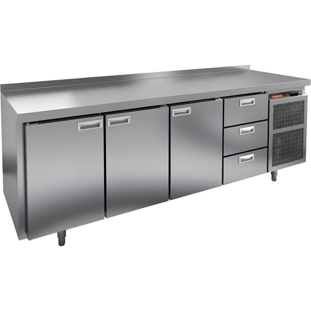 Каталог оборудования Холодильное оборудованиеСтолы охлаждаемыеСтолы холодильные среднетемпературныеСтол холодильный среднетемпературный HiCold SN 1113/TN Стол холодильный среднетемпературный HiCold SN 1113/TN Код товара: 001-329 Поделиться: WhatsAppTelegram СравнитьДобавить в КПВ избранное 0 212 841 ₽ В корзину 0 шт Под заказСамовывоз сегодня бесплатно Взять в кредит Купить в лизинг Получить консультацию в WhatsApp Описание Характеристики Отзывы 0 Инструкции 2 Стол холодильный среднетемпературный HiCold SN 1113/TN сочетает в себе рабочую поверхность для раскатывания теста и обработки ингредиентов, а также охлаждающую камеру для кратковременного хранения скоропортящихся продуктов и напитков. Оборудование предназначено для предприятий общественного питания и обеспечивает комфортную и эффективную работу на кухне. Особенности: Цельнозаливной корпус из нержавеющей стали с 50 мм теплоизоляцией, обеспечивающий высокую герметичность и жесткость конструкции. Надежный электронный блок управления с несколькими режимами оттаивания для удобства эксплуатации. Вентилятор повышенной мощности, обеспечивающий принудительную вентиляцию по всему объему стола и равномерное быстрое охлаждение. Интеллектуальное размораживание и термическое выпаривание конденсата для поддержания оптимальных условий внутри камеры. Новая экономичная модель компрессора, снижающая энергопотребление. Облегченный доступ к агрегату для удобства сервисного обслуживания. Двери с петлями-доводчиками, повышающими комфорт и безопасность при эксплуатации. Регулируемые по высоте ножки для адаптации к рабочей поверхности и неровностям пола. Максимальная нагрузка на полку — 50 кг. Высота борта — 50 мм для удобства и безопасности работы. Рабочая температура окружающего воздуха — от 12 до 37 °C. HiCold SN 1113/TN — это надежное, эргономичное и энергоэффективное решение для профессиональной кухни, сочетающее качественные материалы и современные технологии для оптимального хранения и подготовки продуктов.Изображение товара, представленного на фото, может отличаться от его фактического вида. Показать все Габаритные размеры2280×600×850 ммДиапазон рабочей температурыот -2 до +10 °CРасположение агрегатаБоковое Материал столешницыНержавеющая Тип столаС дверьми и ящиками Тип двериГлухая Объём570 лКоличество дверей3 штКоличество ящиков3 штНапряжение220 ВТип охлажденияДинамический Тип оттайкиАвтоматическая СтолешницаС бортом Вес нетто142 кгБрендHicoldВсе холодильные столы HicoldВсе оцинкованные холодильные столы Все холодильные столы с бортом Оставить отзыв Еще никто не оставил отзыв на этот товар Паспорт на HICOLD SN 1113/TN.pdfДекларация о соответствии.pdf Похожие товары Перейти в каталог Под заказ 197 541 ₽ Стол холодильный среднетемпературный HiCold SN 1112/TN Под заказ 258 741 ₽ Стол холодильный среднетемпературный HiCold SN 1133/TN В наличии 132 149 ₽ Стол холодильный среднетемпературный Cooleq GN4100TN С этим товаром покупают Под заказ 95 465 ₽ Жарочная поверхность Аbat АКО-80/1Н-С-02 Ранее просмотрено Под заказ 237 951 ₽ Стол холодильный среднетемпературный HiCold GNG 11111 BR2 HT