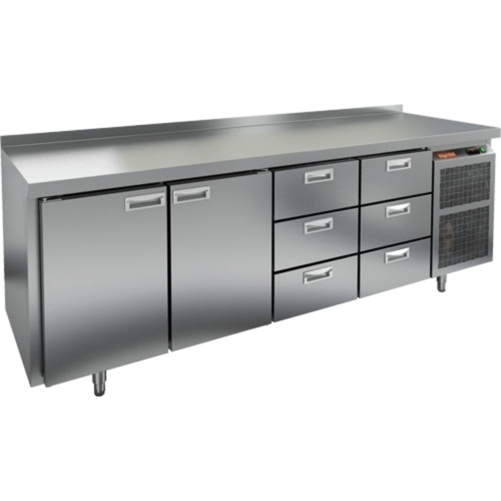 Каталог оборудования Холодильное оборудованиеСтолы охлаждаемыеСтолы морозильные низкотемпературныеСтол морозильный HiCold SN 1133/BT Стол морозильный HiCold SN 1133/BT Код товара: 065-191 Поделиться: WhatsAppTelegram СравнитьДобавить в КПВ избранное 0 297 802 ₽ В корзину 0 шт Под заказСамовывоз сегодня бесплатно Взять в кредит Купить в лизинг Получить консультацию в WhatsApp Описание Характеристики Отзывы 0 Инструкции 2 Стол морозильный HiCold SN 1133/BT — это универсальное решение для профессиональных кухонь и предприятий общественного питания. Он объединяет рабочую поверхность для раскатки теста и подготовки ингредиентов с морозильной камерой для хранения продуктов и полуфабрикатов, что позволяет эффективно организовать рабочее место и ускорить процесс приготовления блюд. Особенности: Цельнозаливной корпус из нержавеющей стали с 50 мм изоляцией обеспечивает высокую герметичность и прочность конструкции. Электронный блок управления с повышенной надежностью и несколькими режимами оттаивания. Вентилятор увеличенной мощности и принудительная вентиляция по всему объему стола обеспечивают равномерное и быстрое охлаждение. Интеллектуальное размораживание для удобного и безопасного использования. Термическое выпаривание конденсата предотвращает образование влаги на рабочей поверхности. Новая экономичная модель компрессора снижает энергопотребление. Облегченный доступ к агрегату упрощает сервисное обслуживание. Двери с петлями-доводчиками и ПЭН (проволочный электронагреватель) по контуру стола предотвращают примерзание. Максимальная нагрузка на полку — 50 кг, что позволяет хранить тяжелые продукты и оборудование. Высота борта рабочей поверхности — 50 мм, обеспечивающая удобство работы и предотвращение скатывания ингредиентов. Рабочая температура окружающего воздуха — от 12 до 32 °C, что делает стол универсальным для различных условий эксплуатации. HiCold SN 1133/BT сочетает функциональность морозильной камеры и удобство рабочей поверхности. Прочные материалы, интеллектуальные системы охлаждения и размораживания, а также продуманные детали конструкции делают его надежным и долговечным оборудованием. Этот стол оптимален для предприятий общественного питания, где требуется быстрое охлаждение, заморозка и комфортная организация рабочего процесса.Изображение товара, представленного на фото, может отличаться от его фактического вида. Показать все Габаритные размеры2280×600×850 ммДиапазон рабочей температурыот -18 до -10 °CРасположение агрегатаБоковое Материал столешницыНержавеющая Тип столаС ящиками Тип двериГлухая Объём570 лКоличество дверей2 штКоличество полок2 штКоличество ящиков6 штРазмер полки430×325 ммНапряжение220 ВМощность0,75 кВтТип охлажденияДинамический Тип оттайкиАвтоматическая СтолешницаС бортом Габариты в упаковке2400×750×1000 ммВес нетто151 кгВес брутто249 кгБрендHicoldВсе морозильные столы HicoldВсе морозильные столы с бортом Оставить отзыв Еще никто не оставил отзыв на этот товар Паспорт на HICOLD SN 1133/BT.pdfДекларация о соответствии.pdf Похожие товары Перейти в каталог Под заказ 79 911 ₽ Стол холодильный среднетемпературный HiCold GN 1/TN W Под заказ 104 947 ₽ Стол холодильный среднетемпературный Abat СХС-70 с бортом (дверь) С этим товаром покупают В наличии 96 390 ₽ Шкаф холодильный Полюс Carboma R560 В наличии 58 095 ₽ Витрина холодильная для ингредиентов HICOLD VRTU 1835 1/3