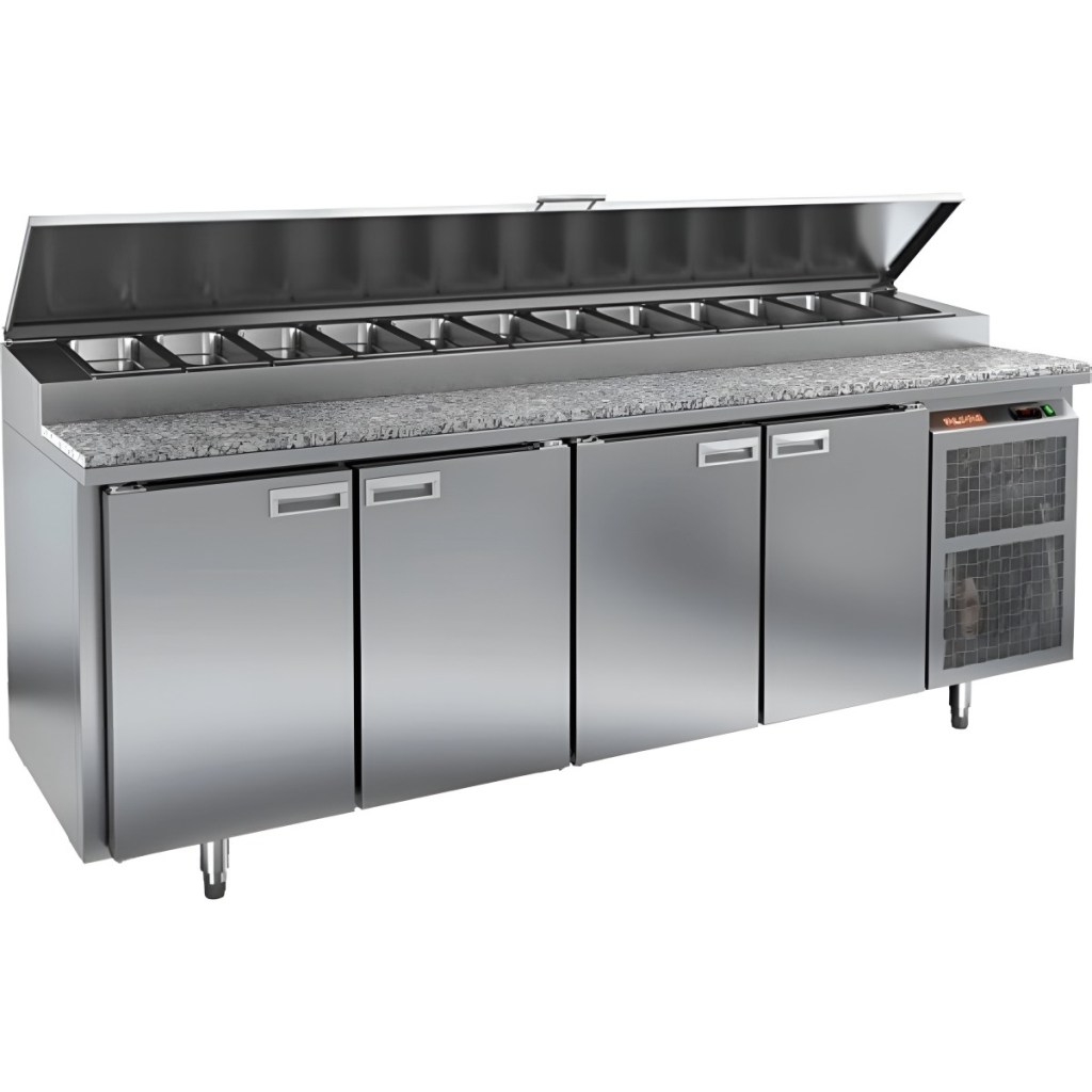 Каталог оборудования Холодильное оборудованиеСтолы охлаждаемыеСтолы холодильные для пиццыСтол холодильный для пиццы HiCold PZ1-1111GN (1/3) камень Стол холодильный для пиццы HiCold PZ1-1111GN (1/3) камень Код товара: 064-684 Поделиться: WhatsAppTelegram СравнитьДобавить в КПВ избранное 0 290 061 ₽ В корзину 0 шт Под заказСамовывоз сегодня бесплатно Взять в кредит Купить в лизинг Получить консультацию в Max Описание Характеристики Отзывы 0 Инструкции 2 Стол холодильный для пиццы HiCold PZ1-1111GN (1/3) камень предназначен для профессиональных кухонь ресторанов, кафе и предприятий торговли. Он совмещает просторную рабочую поверхность из камня для раскатки теста и подготовки ингредиентов с охлаждаемым объёмом для кратковременного хранения продуктов и напитков. Такой подход экономит место и ускоряет работу повара — всё необходимое всегда под рукой. Основные особенности: Столешница из камня — устойчива к механическим повреждениям, не впитывает запахи и легко очищается Динамическая система охлаждения для равномерного распределения холода Автоматическая оттайка для бесперебойной работы Электронная панель управления для точной регулировки температуры 4 вместительные полки формата GN 1/1 (размер 530×325 мм) Автоматические доводчики дверей с фиксатором открытого положения Легкозаменяемые магнитные уплотнители для поддержания герметичности Открытая агрегатная часть для удобного обслуживания Регулируемые по высоте ножки для установки по уровню Максимальная глубина гастроёмкостей: 100 мм Глубина рабочей поверхности: 324 мм Толщина столешницы и теплоизоляции: 50 мм Вместимость салат-бара: до 12 гастроёмкостей HICOLD PZ1-1111/GN со столешницей из камня — это прочный, гигиеничный и удобный стол для пиццы, сочетающий рабочую поверхность и холодильный блок. Идеален для интенсивной эксплуатации на профессиональной кухне.Изображение товара, представленного на фото, может отличаться от его фактического вида. Показать все Габаритные размеры2280×700×1000 ммДиапазон рабочей температурыот +2 до +10 °CРасположение агрегатаБоковое Материал столешницыГранитная Тип столаС дверьми Тип двериГлухая Объём660 лТип гастроемкостейGN 1/3 Количество дверей4 штРазмер полки530×325 ммНапряжение220 ВМощность0,48 кВтТип охлажденияДинамическое Тип оттайкиАвтоматическая Габариты в упаковке2380×840×1140 ммВес нетто208 кгВес брутто228 кгБрендHicoldВсе холодильные столы для пиццы Hicold Оставить отзыв Еще никто не оставил отзыв на этот товар Паспорт на HICOLD PZ1-1111GN (1/3).pdfДекларация о соответствии.pdf Ранее просмотрено Под заказ 71 831 ₽ Дверь холодильная распашная двустворчатая СТ-РДД-1400*1856/80