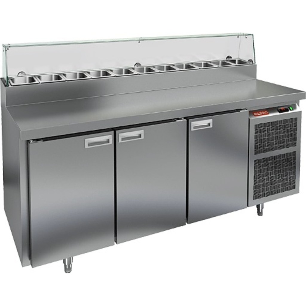 Стол холодильный для пиццы HiCold PZ2-111/GN (1/6H) стекло (R290) предназначен для предприятий общественного питания и торговли. Он используется для раскатки теста и подготовки ингредиентов, необходимых для приготовления пиццы, салатов и других блюд, а также для охлаждения и кратковременного хранения скоропортящихся продуктов и напитков. Модель сочетает рабочую поверхность с охлаждаемым объемом, что значительно облегчает работу повара, позволяя иметь все необходимые компоненты всегда под рукой.