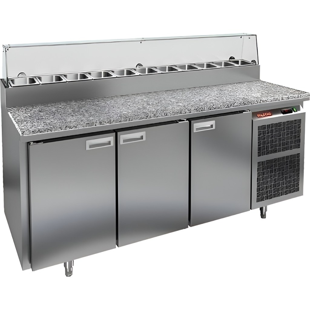 Каталог оборудования Холодильное оборудованиеСтолы охлаждаемыеСтолы холодильные для пиццыСтол холодильный для пиццы HiCold PZ2-111GN (1/6) камень со стеклом Стол холодильный для пиццы HiCold PZ2-111GN (1/6) камень со стеклом Код товара: 064-742 Поделиться: WhatsAppTelegram СравнитьДобавить в КПВ избранное 0 256 672 ₽ В корзину 0 шт Под заказСамовывоз сегодня бесплатно Взять в кредит Купить в лизинг Получить консультацию в Max Описание Характеристики Отзывы 0 Инструкции 2 Стол холодильный для пиццы HiCold PZ2-111GN (1/6) камень со стеклом предназначен для предприятий общественного питания и торговли. Он совмещает рабочую поверхность для раскатки теста и подготовки ингредиентов с охлаждаемым блоком для кратковременного хранения скоропортящихся продуктов и напитков. Стеклянный купол защищает ингредиенты от внешних воздействий и обеспечивает их наглядную демонстрацию, что особенно удобно при использовании в салат-барах. Корпус выполнен из нержавеющей стали, а рабочая столешница — из гранита, что обеспечивает долговечность, прочность и удобство работы с продуктами. Основные особенности: Гранитная столешница и корпус из нержавеющей стали — прочность, долговечность и лёгкость ухода Стеклянный купол — защита ингредиентов и визуальная демонстрация продуктов Динамическая система охлаждения — равномерное распределение холода по всему объёму Автоматическая оттайка — стабильная работа без наледи Электронная панель управления — точная настройка температуры 3 вместительные внутренние полки формата GN 1/1 (размер 530×325 мм) — удобное хранение ингредиентов Автоматические доводчики дверей с фиксатором открытого положения — комфортная эксплуатация Легкозаменяемые магнитные уплотнители — поддержание герметичности Открытая агрегатная часть — лёгкий доступ к техническим элементам Регулируемые по высоте ножки — установка на неровных поверхностях Максимальная глубина гастроёмкостей: 100 мм Глубина рабочей поверхности: 486 мм Толщина столешницы: 50 мм Толщина теплоизоляции: 50 мм Вместимость салат-бара: до 11 гастроёмкостей Стол холодильный HiCold PZ2-111GN (1/6) камень со стеклом— надёжный и функциональный стол для пиццы и салатов. Гранитная рабочая поверхность повышает прочность и долговечность оборудования, а стеклянный купол обеспечивает защиту и наглядное представление ингредиентов. Стол обеспечивает удобство работы и быстрый доступ к продуктам, делая его оптимальным решением для профессиональных кухонь и предприятий общественного питания. Изображение товара, представленного на фото, может отличаться от его фактического вида. Показать все Габаритные размеры1835×700×1000 ммДиапазон рабочей температурыот +2 до +10 °CРасположение агрегатаБоковое Материал столешницыГранитная Тип столаС дверьми Тип двериГлухая Объём505 лТип гастроемкостейGN 1/6 Количество дверей3 штРазмер полки530×325 ммНапряжение220 ВМощность0,46 кВтТип охлажденияДинамическое Тип оттайкиАвтоматическая Габариты в упаковке2000×850×1080 ммВес нетто172 кгВес брутто248 кгБрендHicoldВсе холодильные столы для пиццы Hicold Оставить отзыв Еще никто не оставил отзыв на этот товар Паспорт на HICOLD PZ2-111GN.pdfДекларация о соответствии.pdf Ранее просмотрено Под заказ 157 492 ₽ Стол холодильный среднетемпературный HiCold GNE 12/TN М без столешницы В наличии 40 953 ₽ Дверной блок с распашной дверью Polair 1200×2040/80 В наличии 143 272 ₽ Стол холодильный для сала