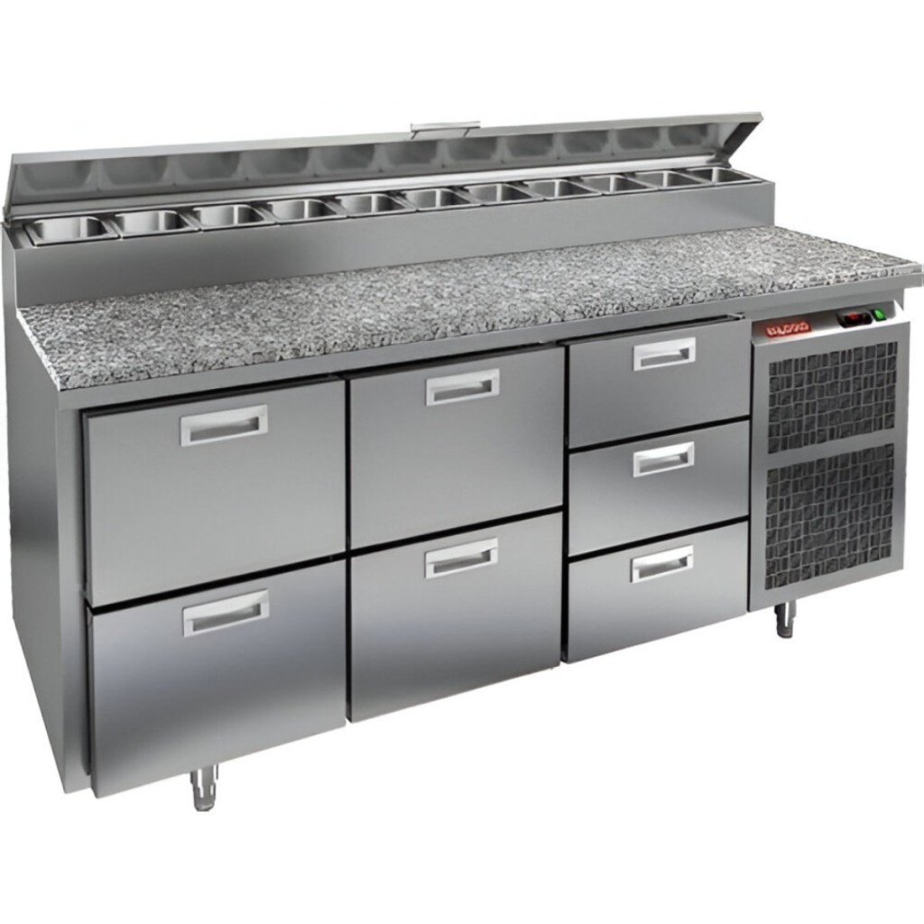 Каталог оборудования Холодильное оборудованиеСтолы охлаждаемыеСтолы холодильные для пиццыСтол холодильный для пиццы HiCold PZ2-223GN (1/6) камень Стол холодильный для пиццы HiCold PZ2-223GN (1/6) камень Код товара: 064-772 Поделиться: WhatsAppTelegram СравнитьДобавить в КПВ избранное 0 353 962 ₽ В корзину 0 шт Под заказСамовывоз сегодня бесплатно Взять в кредит Купить в лизинг Получить консультацию в WhatsApp Описание Характеристики Отзывы 0 Стол холодильный для пиццы HiCold PZ2-223GN (1/6) камень предназначен для профессиональных кухонь и предприятий общественного питания. Он используется для раскатки теста, подготовки ингредиентов для пиццы, салатов и других блюд, а также для охлаждения и кратковременного хранения скоропортящихся продуктов. Модель совмещает гранитную рабочую поверхность и охлаждаемый отсек с 7 выдвижными ящиками, что обеспечивает максимальное удобство доступа к ингредиентам и эффективное распределение хранения. Особенности: Динамическая система охлаждения для равномерного поддержания температуры Автоматическая оттайка для удобного обслуживания Электронная панель управления для точной настройки параметров Вместительная внутренняя полка формата GN 1/1 (размер 530×325 мм) 7 выдвижных ящиков для хранения ингредиентов Легкозаменяемые магнитные уплотнители для герметичности Открытая агрегатная часть для легкого доступа к компонентам Регулируемые по высоте ножки для устойчивости Гранитная столешница глубиной 486 мм и толщиной 50 мм — устойчива к повреждениям, легко моется и гигиенична Толщина теплоизоляции: 50 мм Максимальная глубина гастроемкостей: 100 мм Вместимость салат-бара: 11 гастроемкости Стол холодильный HiCold PZ2-223GN (1/6) камень— это профессиональное решение для кухонь с высоким потоком заказов. Он сочетает прочность, функциональность и удобство, обеспечивая идеальные условия для хранения и подготовки ингредиентов.Изображение товара, представленного на фото, может отличаться от его фактического вида. Показать все Габаритные размеры1835×700×1000 ммДиапазон рабочей температурыот +2 до +10 °CРасположение агрегатаБоковое Материал столешницыГранитная Тип столаС ящиками Объём505 лТип гастроемкостейGN 1/6 Количество ящиков7 штРазмер полки530×325 ммНапряжение220 ВМощность0,5 кВтТип охлажденияДинамическое Тип оттайкиАвтоматическая Габариты в упаковке2000×850×1140 ммВес нетто172 кгВес брутто248 кгБрендHicoldВсе холодильные столы для пиццы Hicold Оставить отзыв Еще никто не оставил отзыв на этот товар Ранее просмотрено Под заказ 205 900 ₽ Горка холодильная Ангара ГХ 1000 - 0,9 (без боковин) Под заказ 273 142 ₽ Стол холодильный для пиццы HiCold PZ1-1111/GN (1/3H) M (R290)