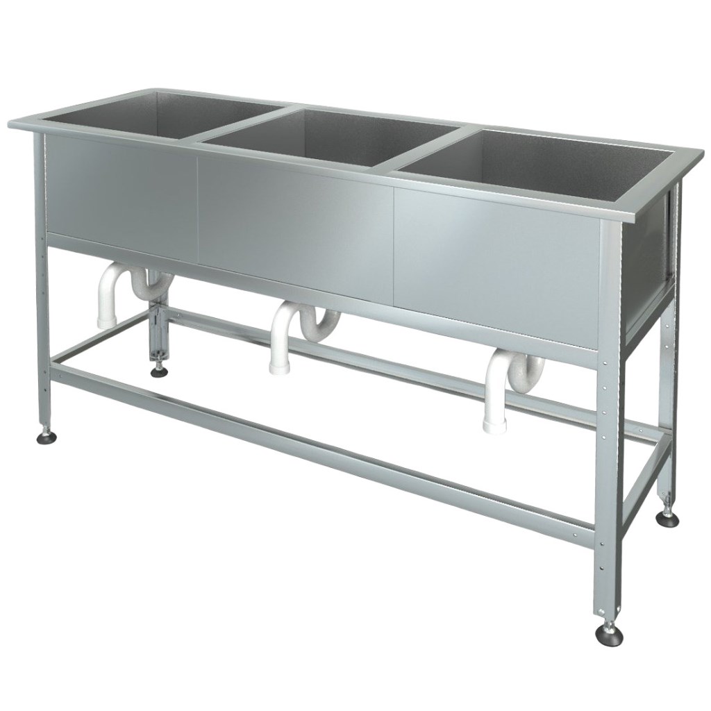 Трёхсекционная ванна — позволяет разделять процессы мытья, дезинфекции и ополаскивания, повышая производительность и гигиеничность.