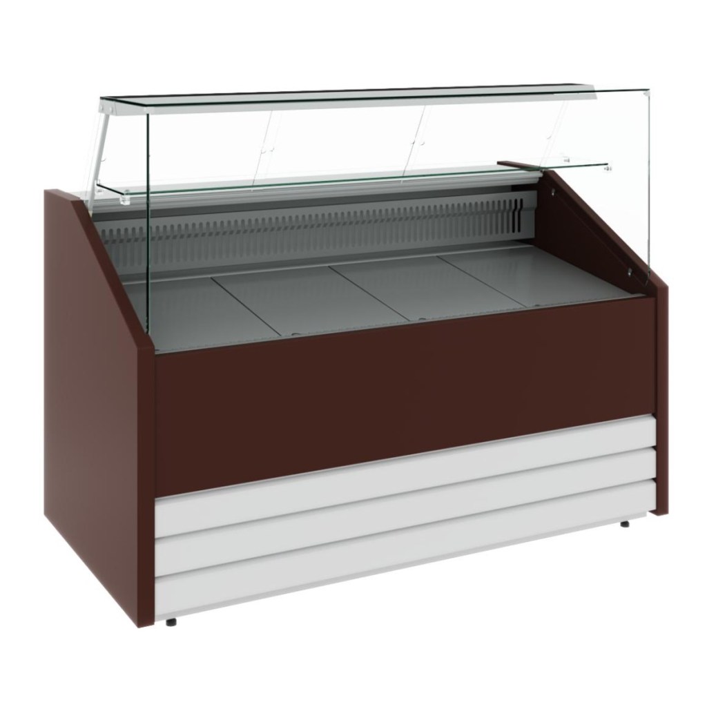 Фронтальная декоративная панель может быть выполнена в нестандартных цветах по выбору производителя, что позволяет подчеркнуть фирменный стиль и вписать витрину в цветовую гамму или дизайн торгового помещения, делая её не только функциональной, но и эстетически привлекательной.
